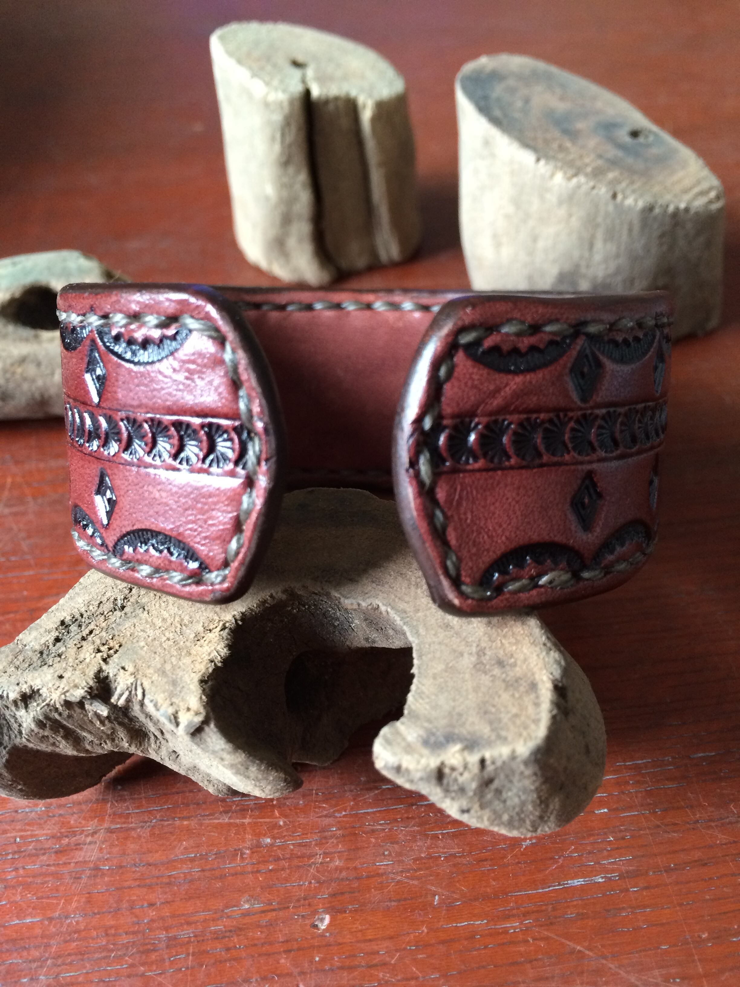 スタンプワークのレザーバングルです