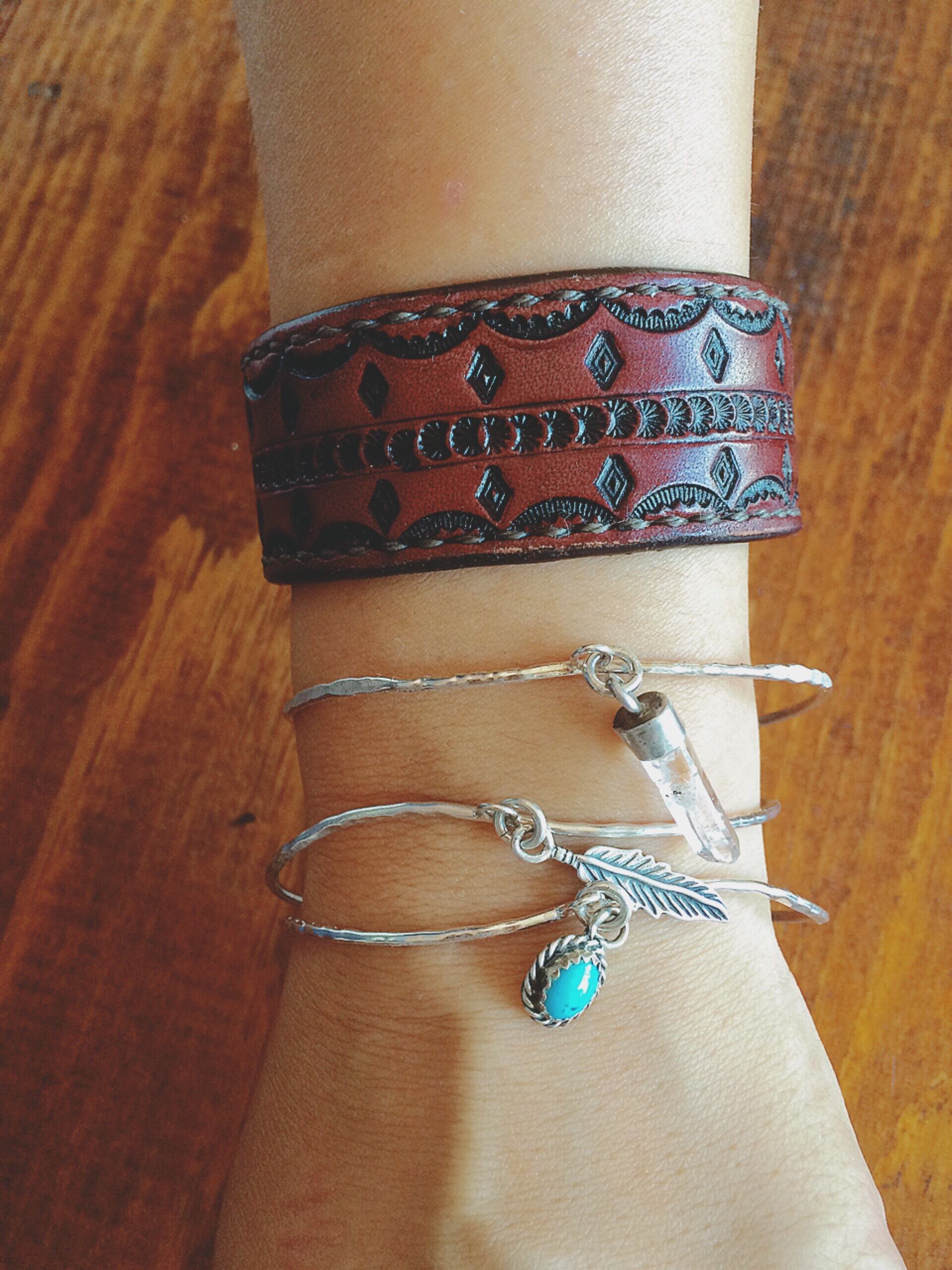 シルバー925の細い輪っかにターコイズのチャームが付いたブレスです
