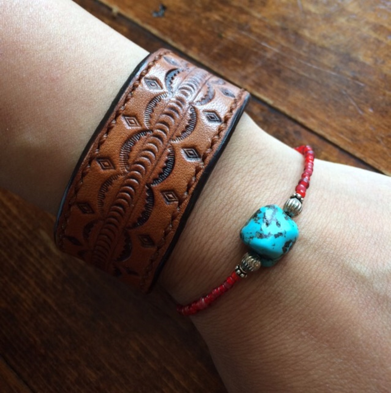 大ぶりなターコイズとアンティークのホワイトハーツビーズのブレスレット