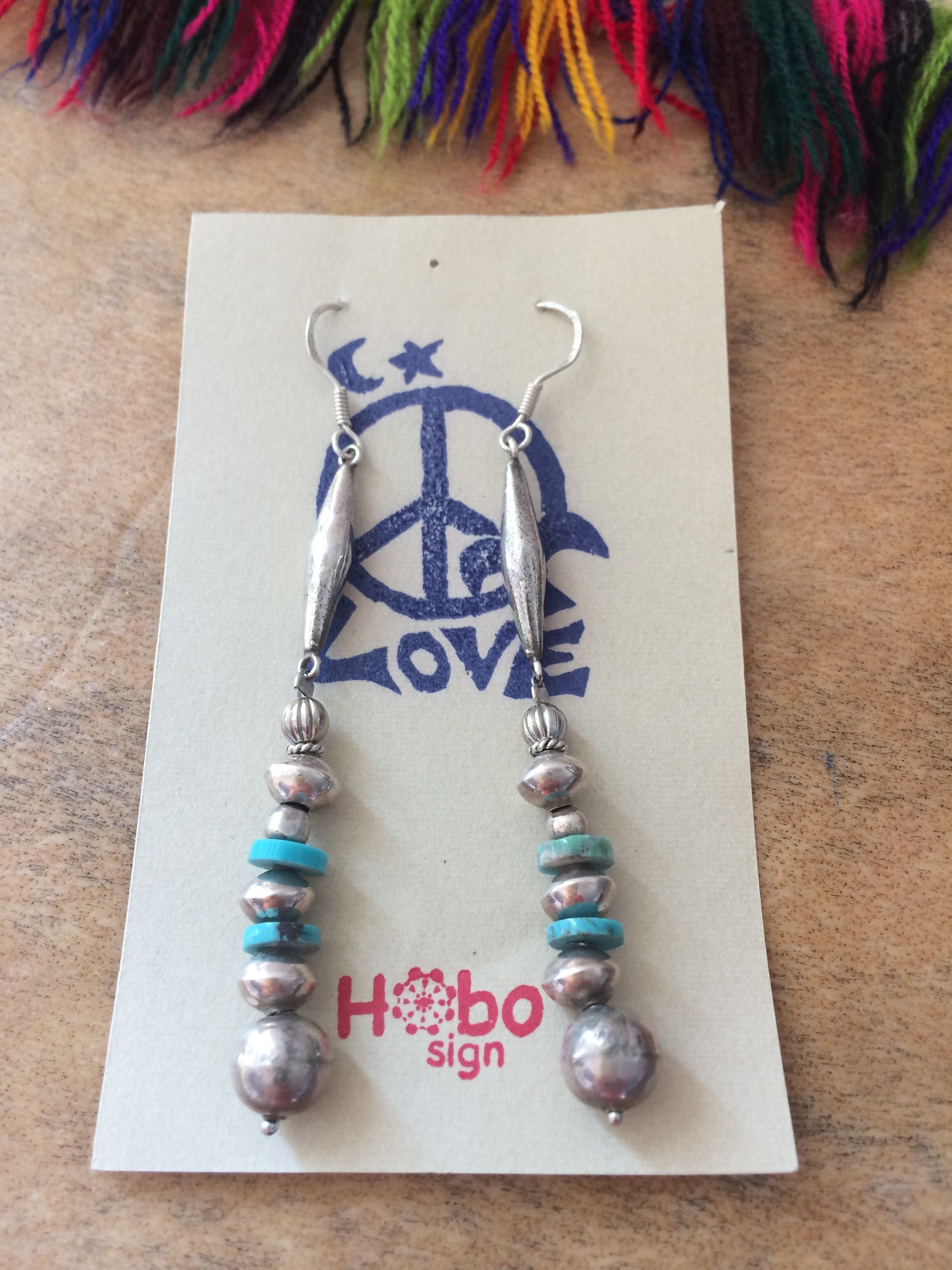 ビンテージのシルバーパーツとターコイズを使用したインディアンピアス